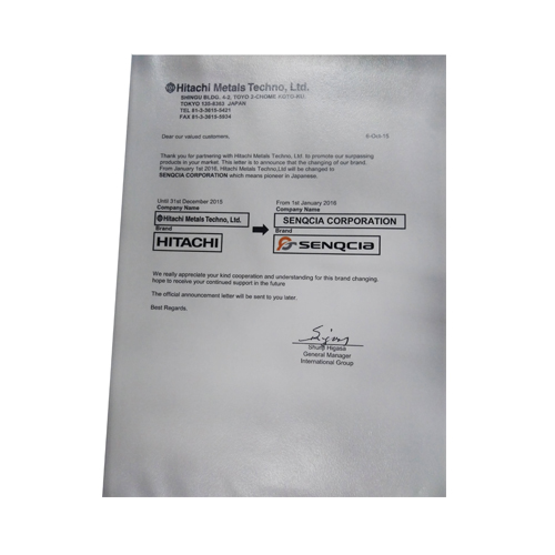 原HITACHI日立品牌于2016年變更為SENQCIA品牌,該品牌下產品標識及包裝已改變,但產品訂貨規格型號以及質量均與舊品牌(HITACHI)無差異。請訂貨客戶知曉!