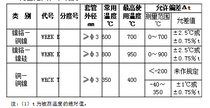 當周圍空氣溫度為20±15℃,相對濕度不大于80%時,絕緣型鎧裝熱電偶的偶絲與外套管之間的絕緣電阻值應符合下表的規定。