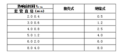 鎧裝熱電偶熱響應時間不大于下表的規定: