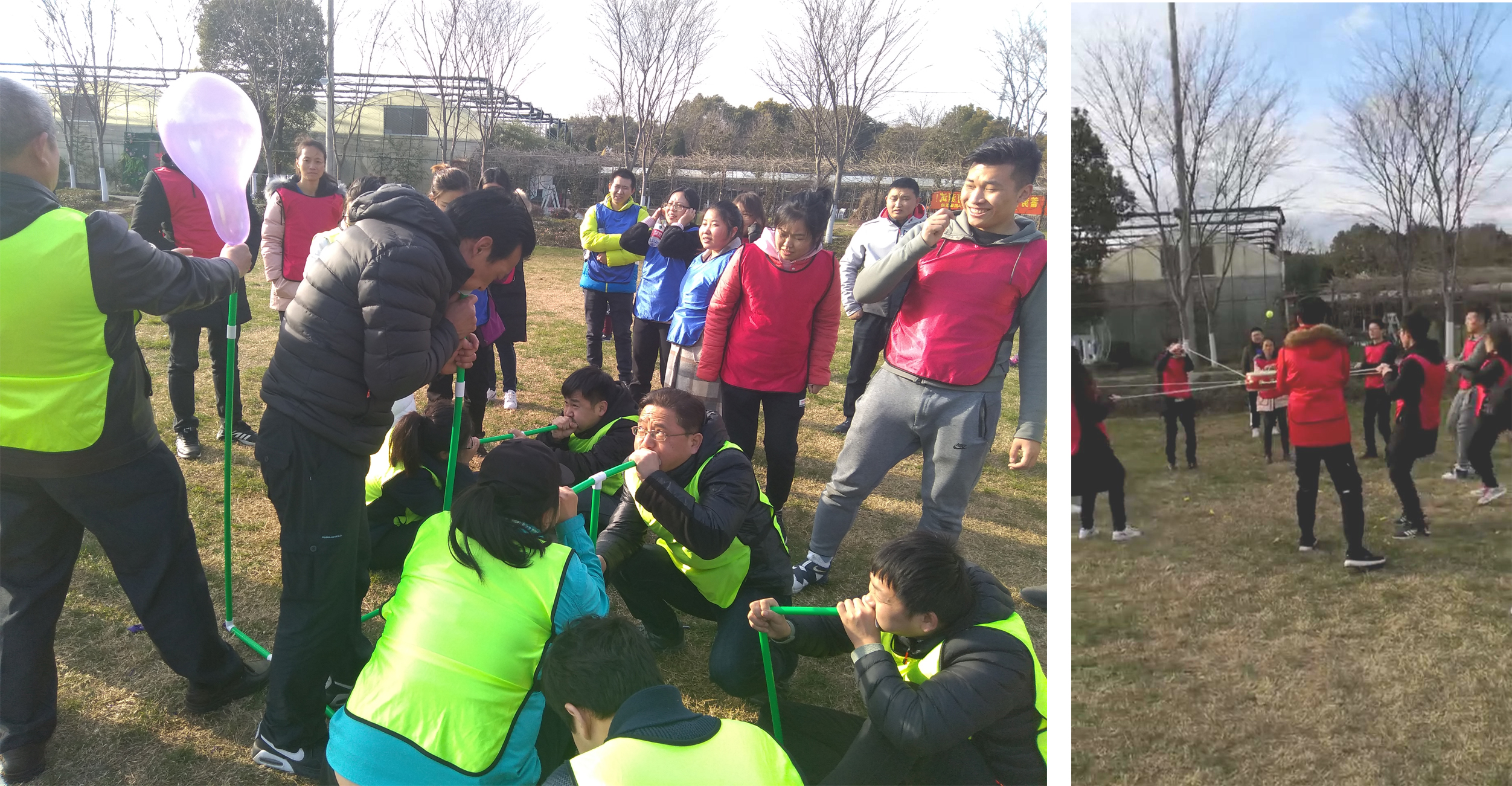合作吹氣球、齊心協力擊鼓顛球